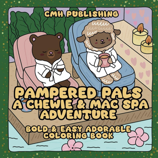 Chewie and Mac Day Spa Adventures Coloring Book | 15 Adorable Bold Easy Hand-Drawn Coloring Pages | Instant Printable PDF Digital Download