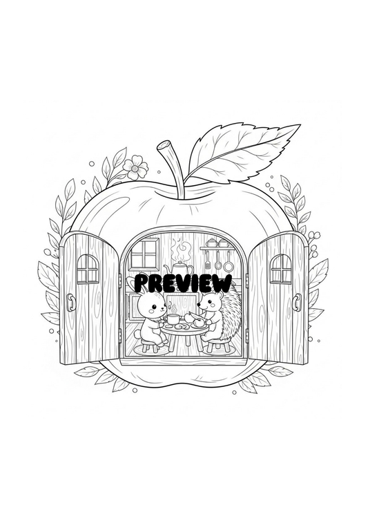Cozy Homes Coloring Book (Printable PDF), 40 Cute Apple Cottages