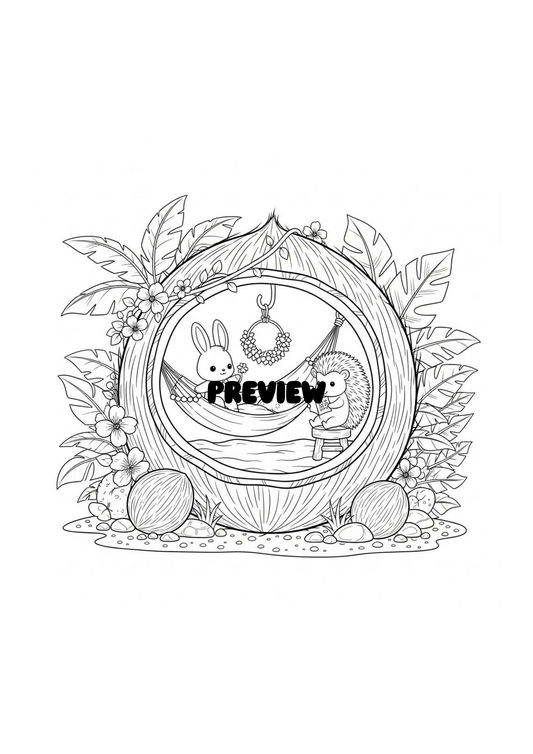 Cozy Homes Coloring Book (Printable PDF), 32 Cute Coconut Cottages