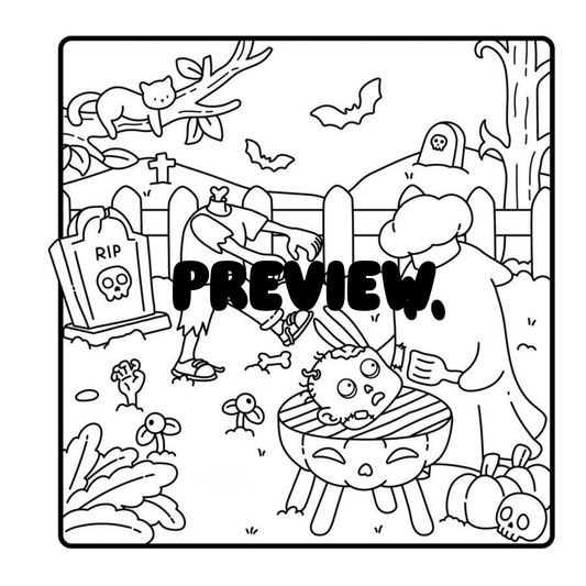 Cozy Zombie Friends PDF Coloring Book | 20 Hand-Drawn Scenes