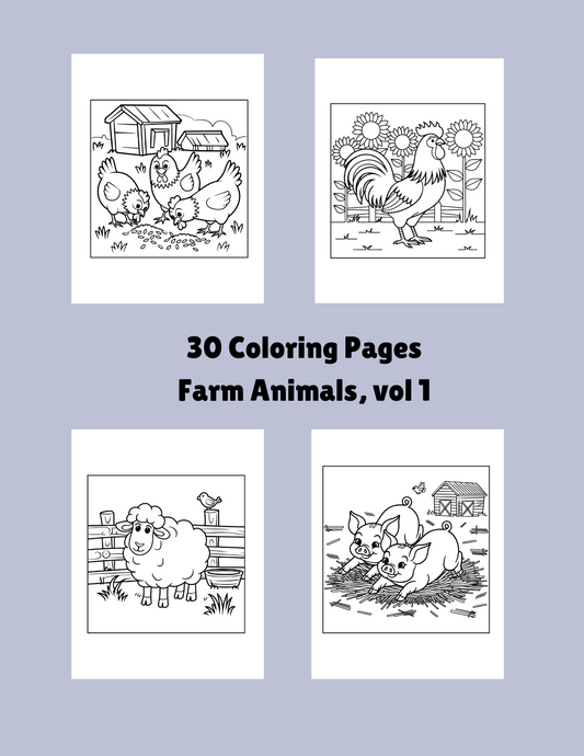 Cozy Farm Bold and Easy Coloring Book for Kids | Set of 30 Coloring Pages of Farm Animals| Instant PDF Digital Download