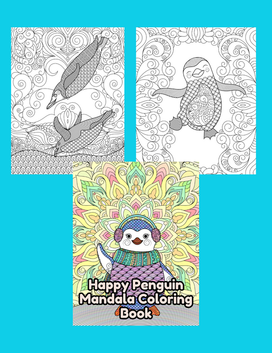 Penguin Mandala Animal Coloring Pages | Mandala Coloring | 34 Coloring Book Pages for Adults and Teens | Printable PDF Instant Download