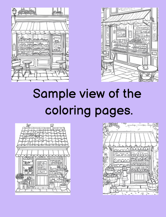 Kawaii Town Storefronts Coloring Book | Set of 30 Detailed Coloring Pages | Instant Download PDF