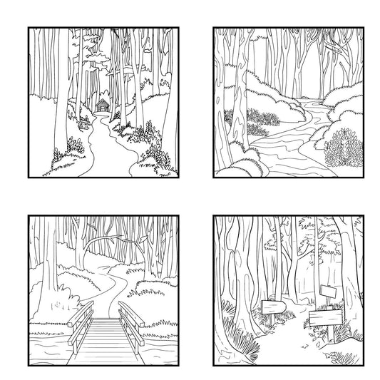 Bold and Easy Forest Scenes Printable Coloring Book | Set of 16 Simple Coloring Pages for Teens and Adults | Instant PDF Download