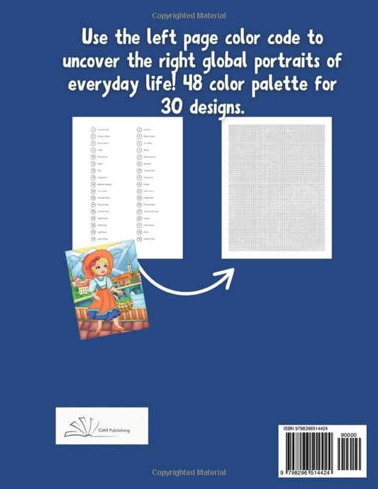 World Faces Pixel Mosaic Color by Number Coloring Book