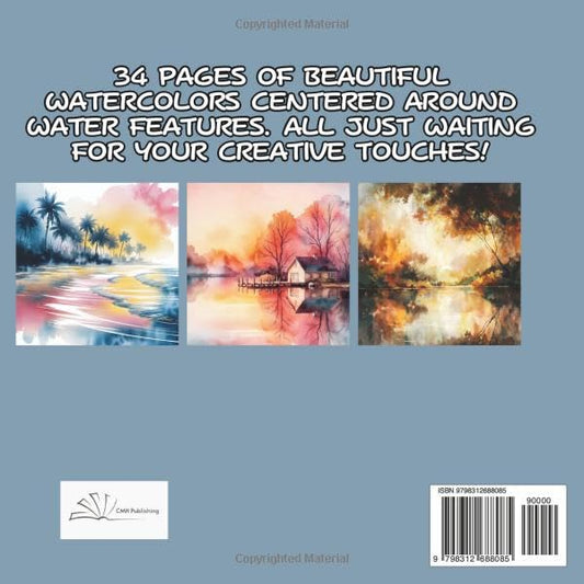 Reverse Coloring for Adults Peaceful Water Designs: Watercolor Art for Stress Relief and Relaxation
