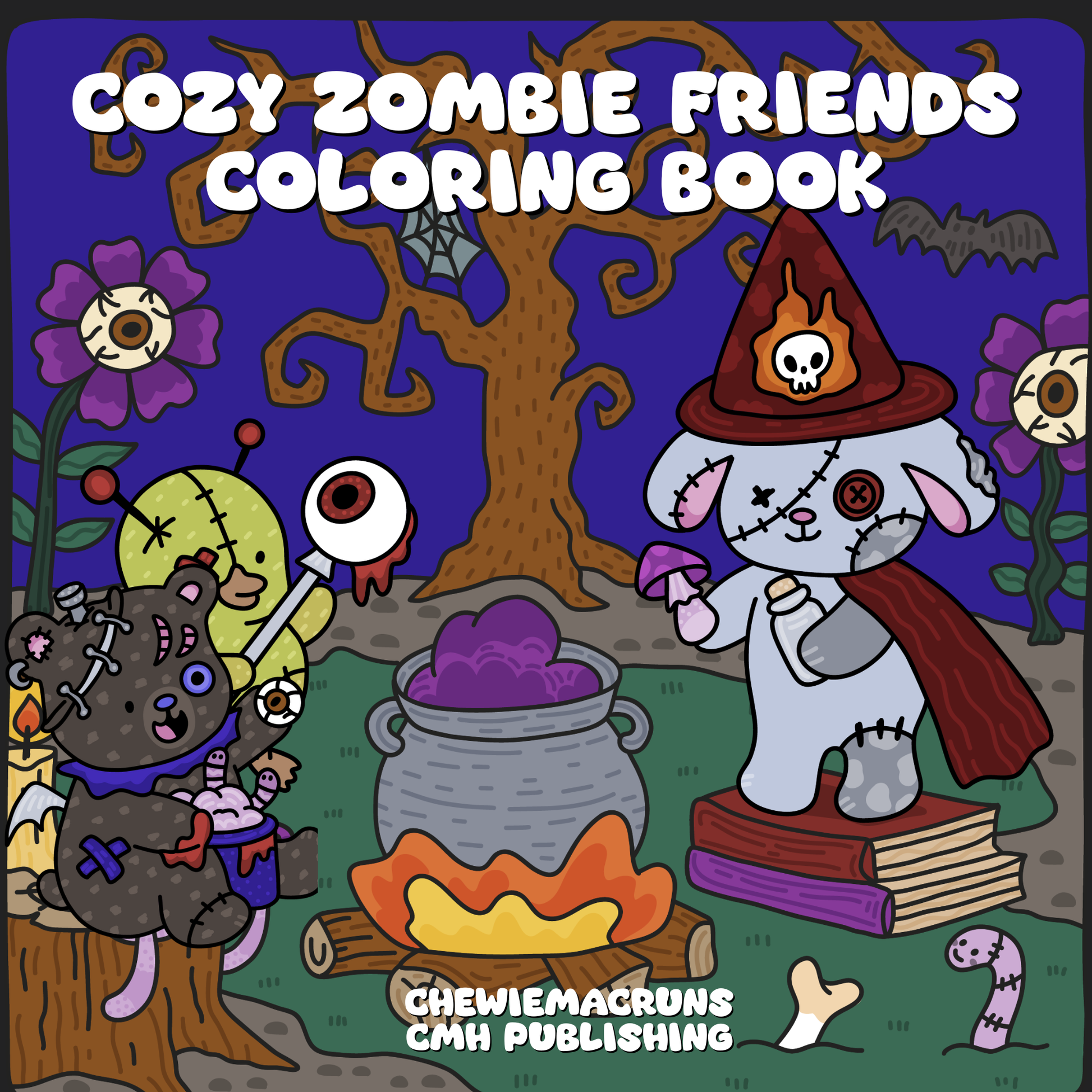 Cozy Zombie Friends PDF Coloring Book | 20 Hand-Drawn Scenes
