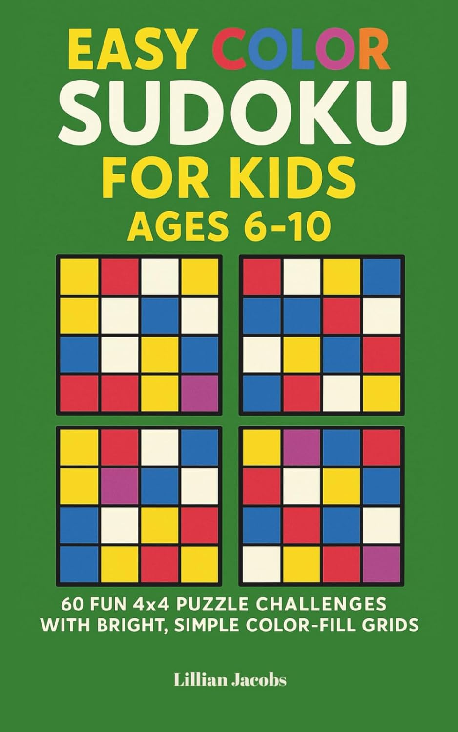 This Color Sudoku Puzzle Book for Kids turns classic Sudoku into an easy, colorful adventure perfect for young learners. Instead of numbers, children use four bright colors to complete each puzzle, building logic, attention to detail, and early critical-thinking skills — all while having fun.