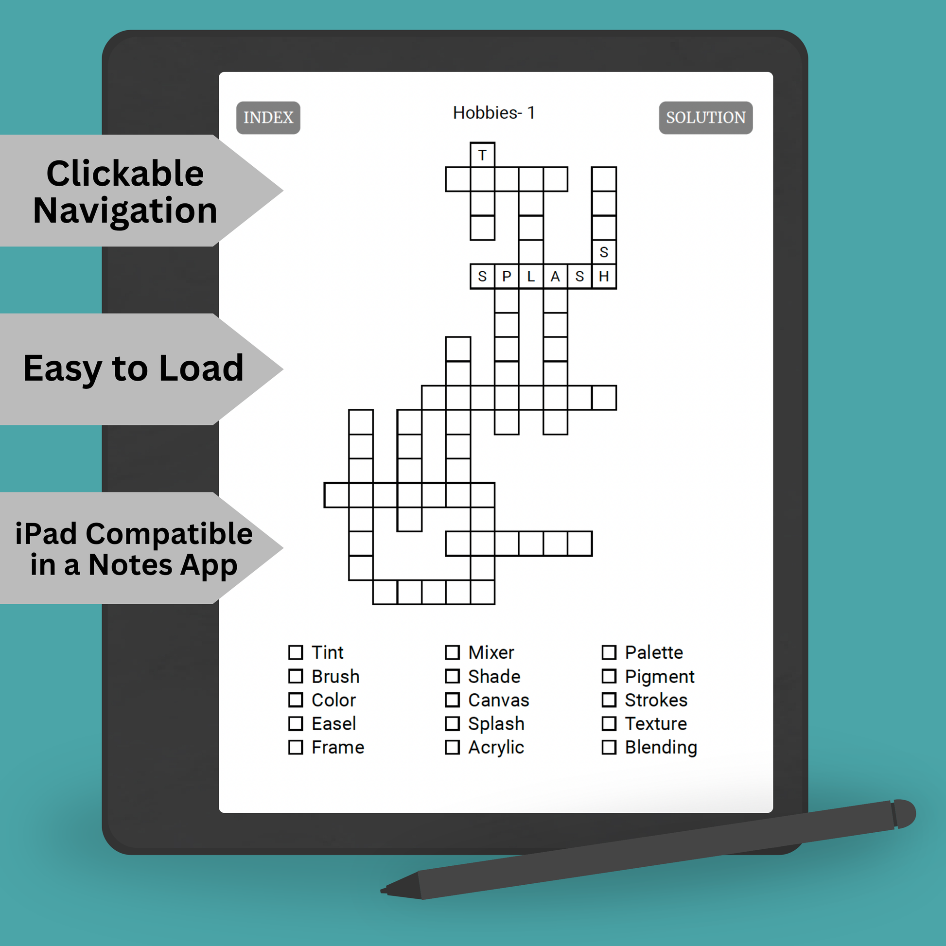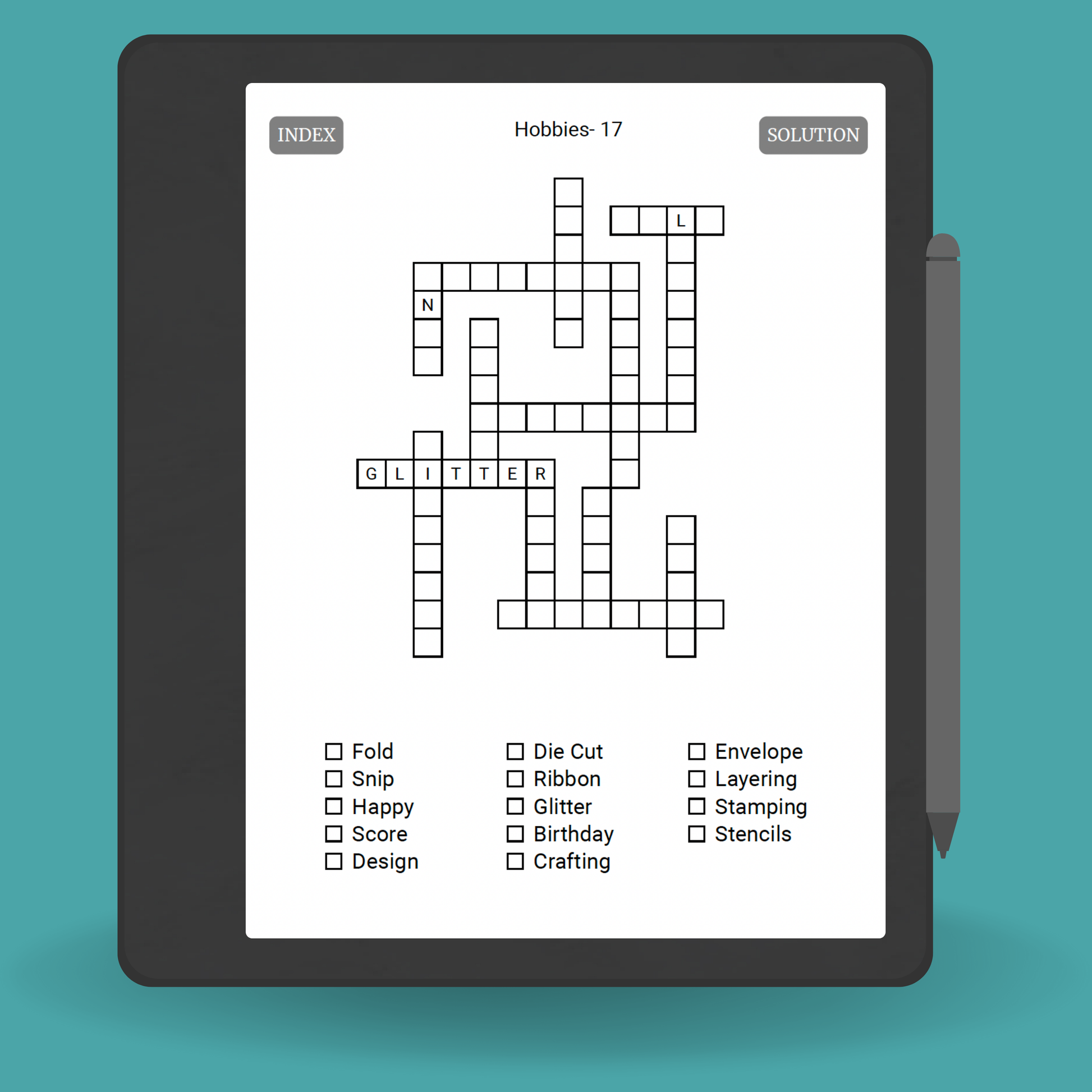 This Kindle Scribe Puzzle Book features 200 engaging word fill-in puzzles all themed around hobbies and crafts. Perfect for puzzle lovers of all ages, this hyperlinked digital PDF is designed for seamless use on Kindle Scribe, but also works beautifully on other e-ink tablets and devices.