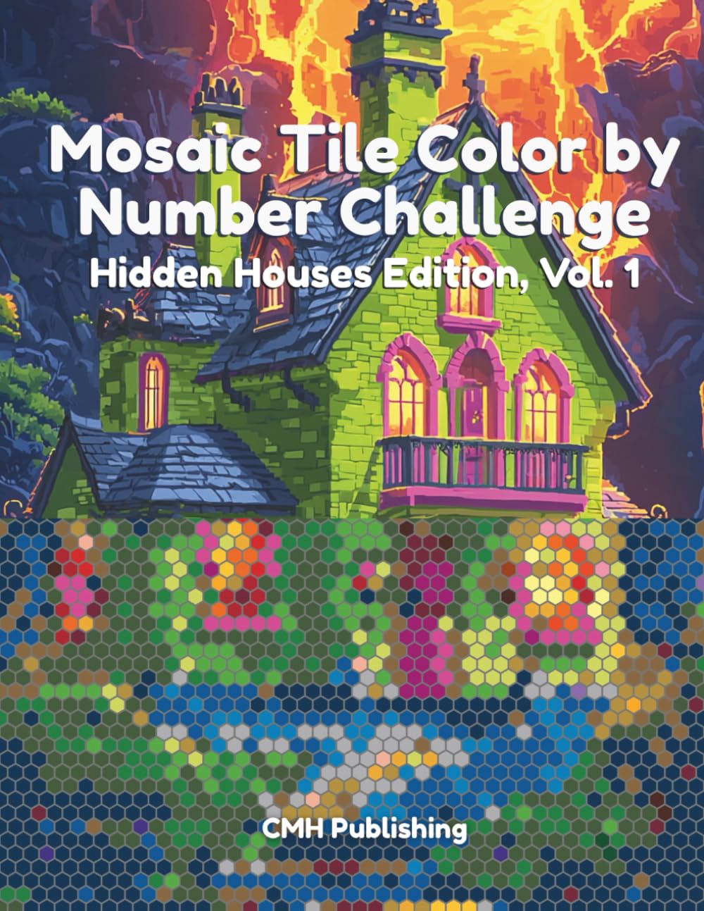 Step into a creative challenge unlike any other with Mosaic Tile Color by Number Challenge: Hidden Houses Edition, Vol. 1. This intricate color-by-number coloring book invites you to fill each hexagon tile with color and slowly reveal 50 beautifully designed hidden houses.
